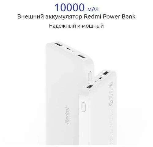Портативный аккумулятор Xiaomi Redmi Power Bank c кабеля, 10000 mAh, белый, упаковка: коробка информация: