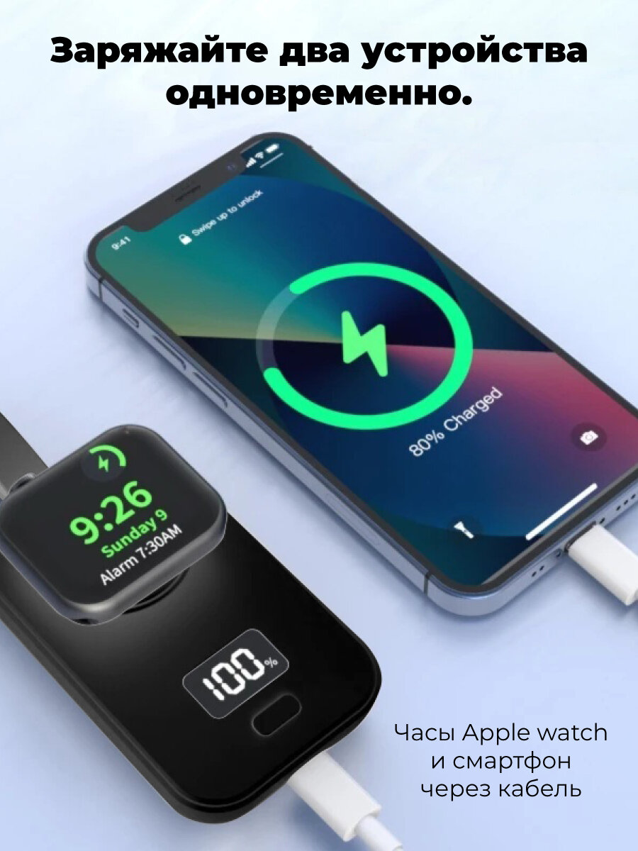 Внешний аккумулятор брелок 2500 mAh для заряда Apple Watch всех поколений с дисплеем информация: