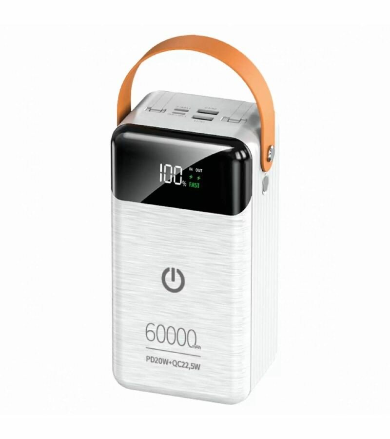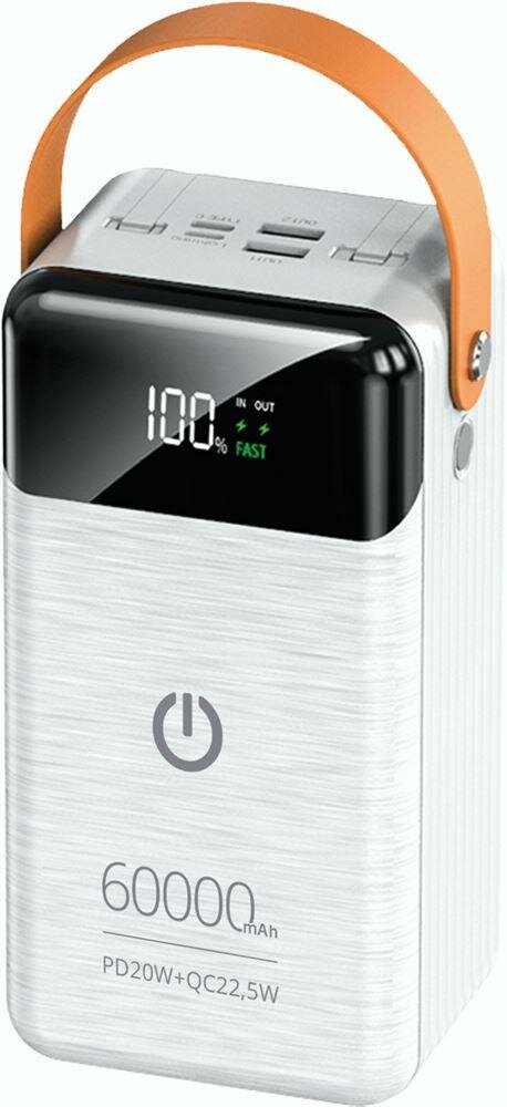 Внешний аккумулятор 60000mAh Perfeo Powerbank PRODIGE LED/PD + QC 3.0/Type-C/Lightning/2 USB/Выход: 5A, max 22.5W/белый информация: