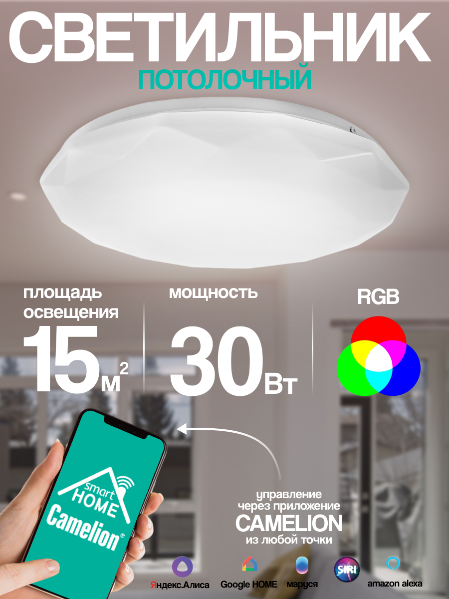 10 цен на Умный потолочный светильник Camelion SH-30 с Wi-Fi управлением RGBCW