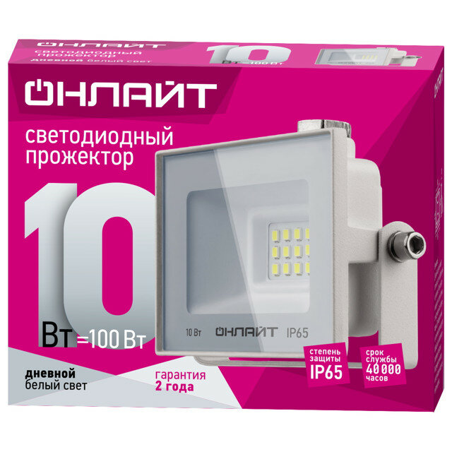 прожектор светодиодный онлайт 10Вт 6000K IP65 LED белый информация: