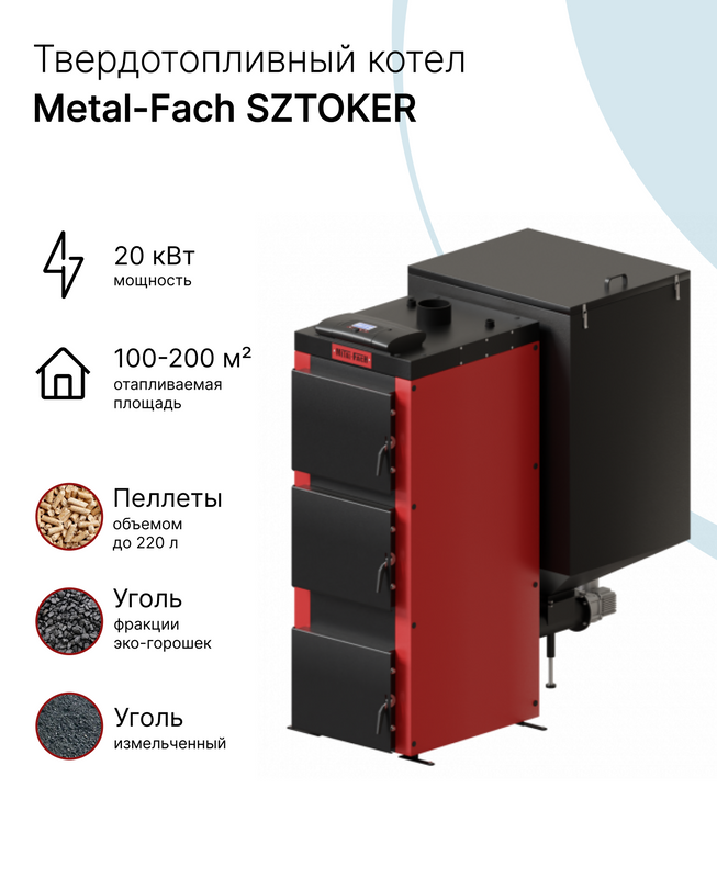 Твердотопливный автоматический котел Metal-Fach SZTOKER 20 кВт информация: