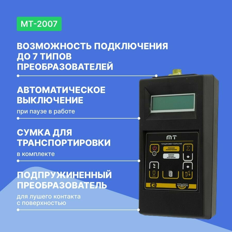 МТ-2007 Толщиномер покрытий магнитный с преобразователем МТ-М для измерения малых толщин 2 -500 мкм с поверкой информация: