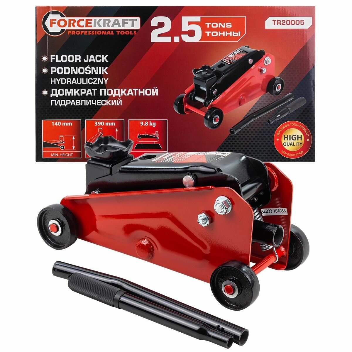 Домкрат подкатной гидравлический 2.5т (h min 140мм, h max 390мм) FORCEKRAFT FK-TR20005 информация: