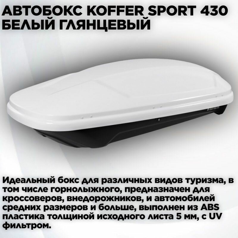 Автомобильный бокс (багажник на крышу) Koffer Sport 1860х850х400 белый глянец (duo open) 430л информация: