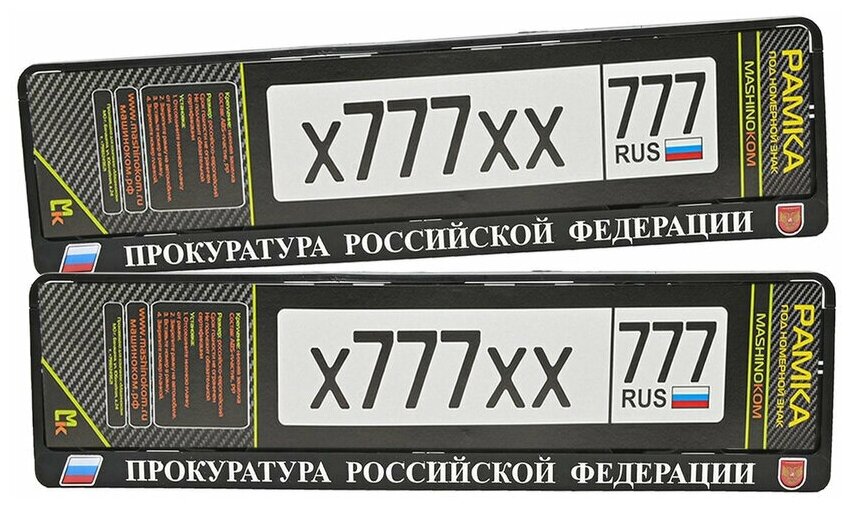 Рамка для госномера / Mashinokom / Прокуратура РФ / Комплект 2 шт. информация: