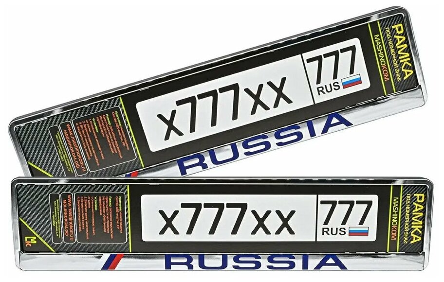 Рамка для госномера / Mashinokom / Russia" хром / Комплект 2 шт. информация: