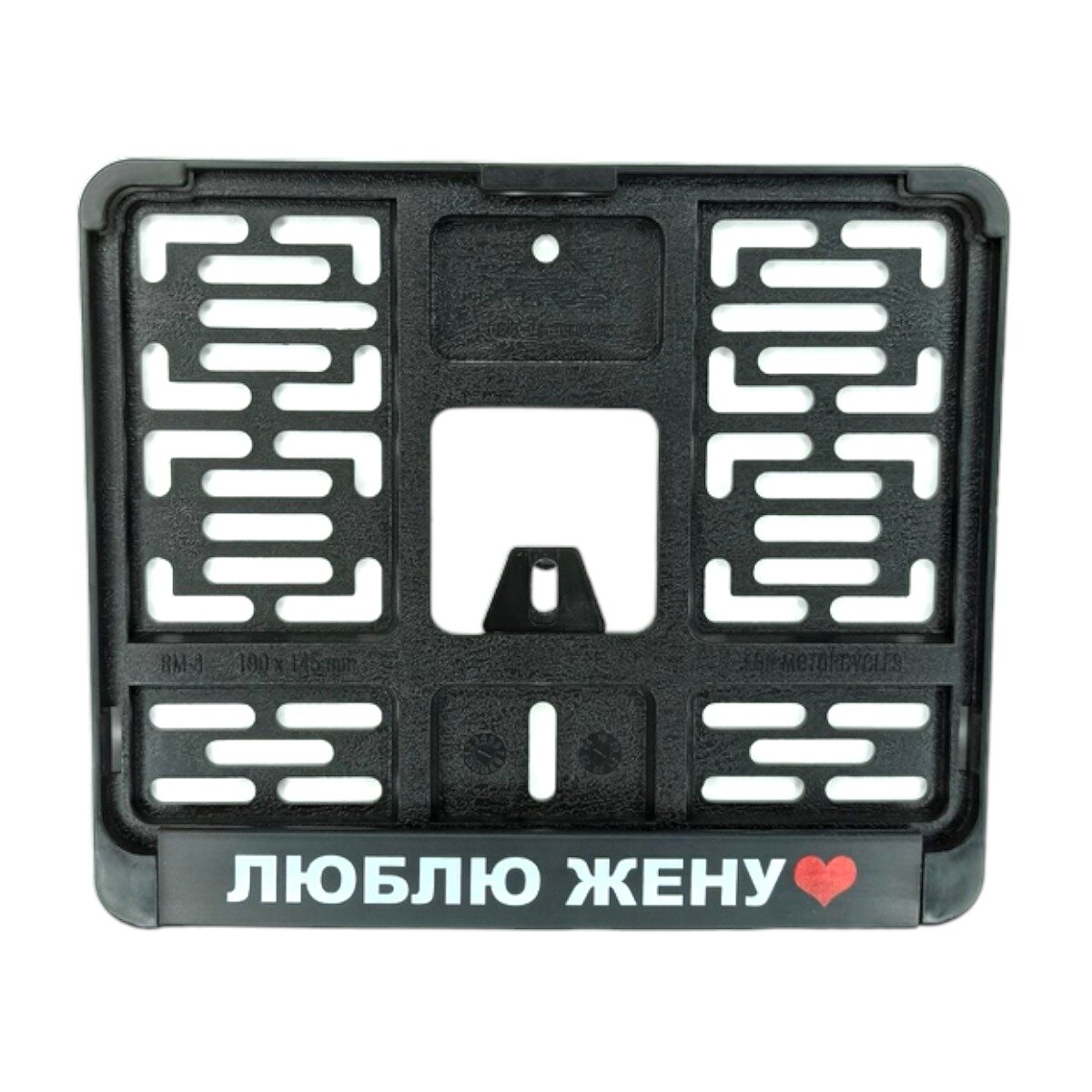 Рамка номера с надписью Люблю Жену на мотоцикл скутер мопед квадроцикл для мотоциклиста, бело-красная информация: