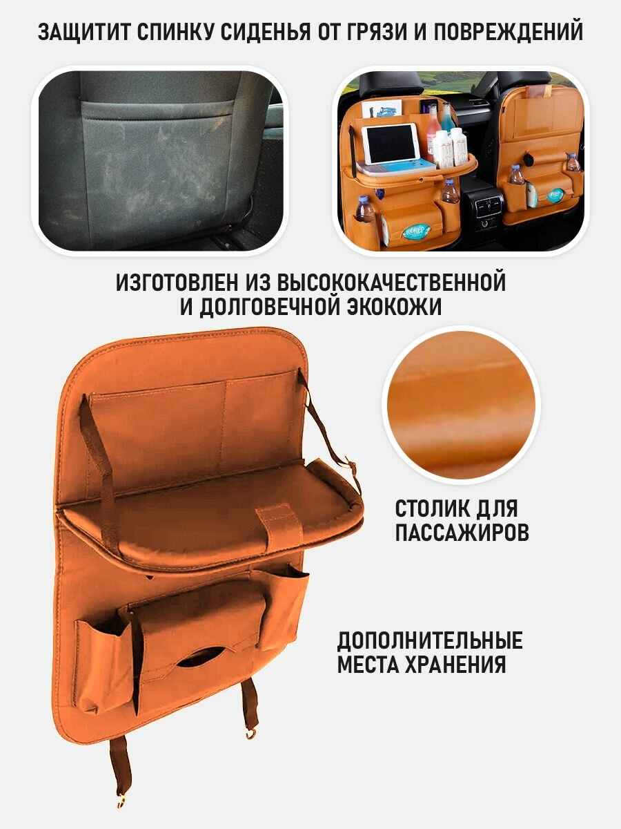 Органайзер на спинку сиденья автомобиля со столиком (Коричневый) информация: