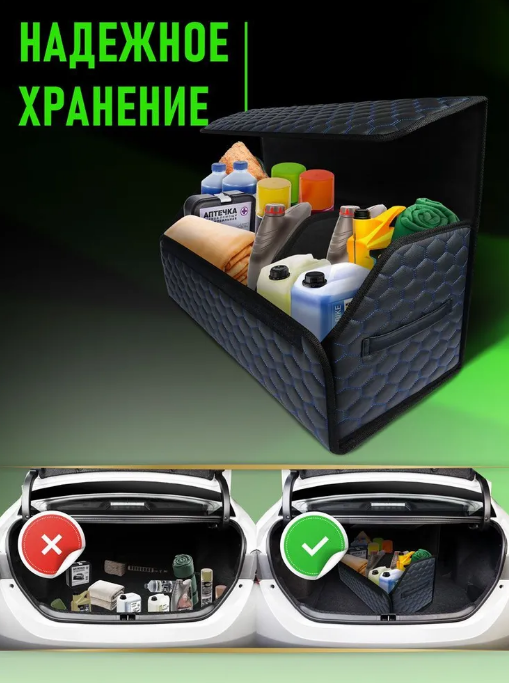 CarCape Органайзер в багажник автомобиля 70х30 DIAMOND, черный/синяя строчка информация: