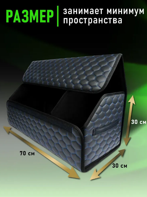 Саквояж в багажник автомобильный эко кожа черная синий ромб, объем 45 л
