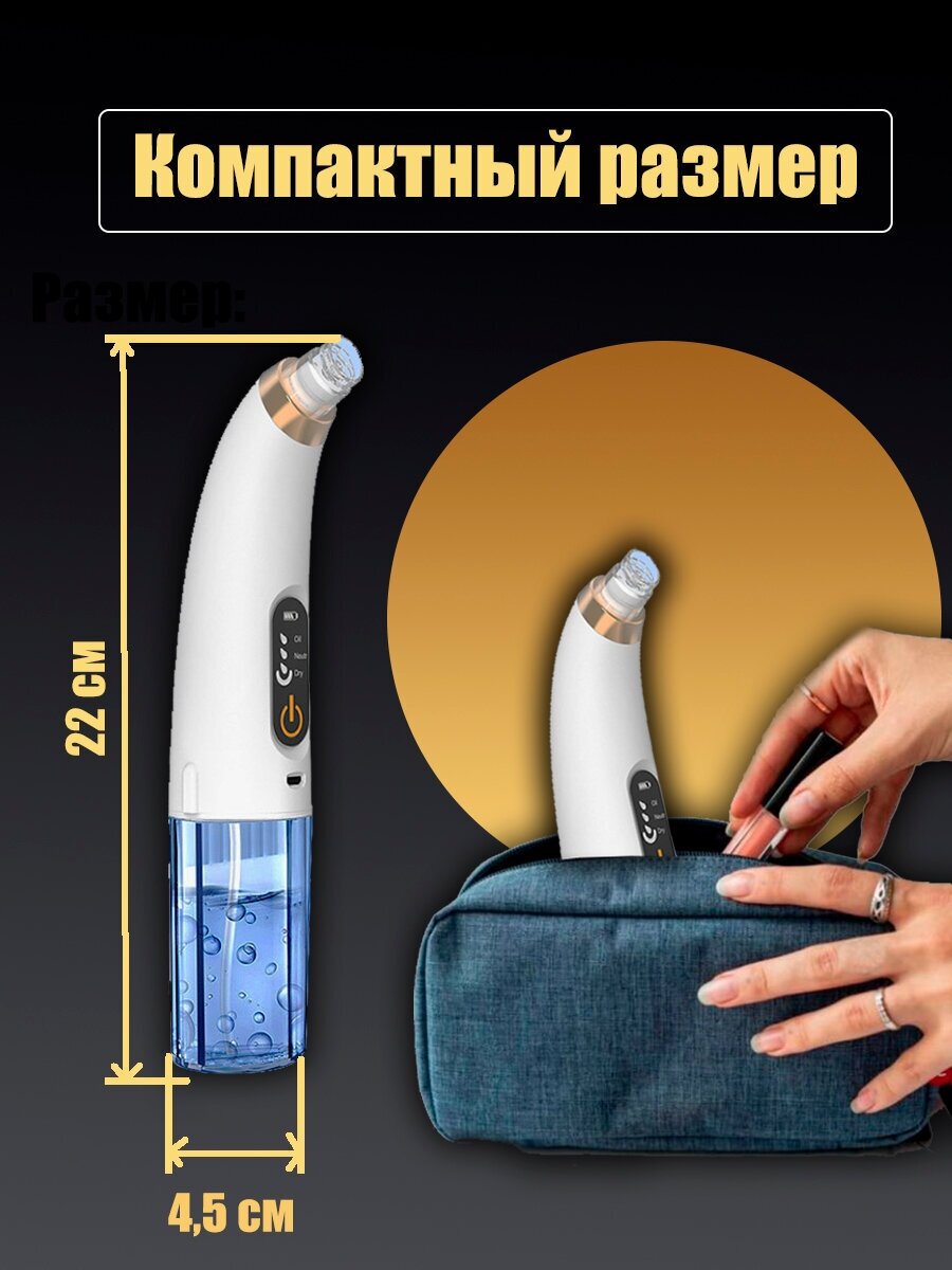 Вакуумный аппарат для удаления чёрных точек, чистка лица. 6 насадок.