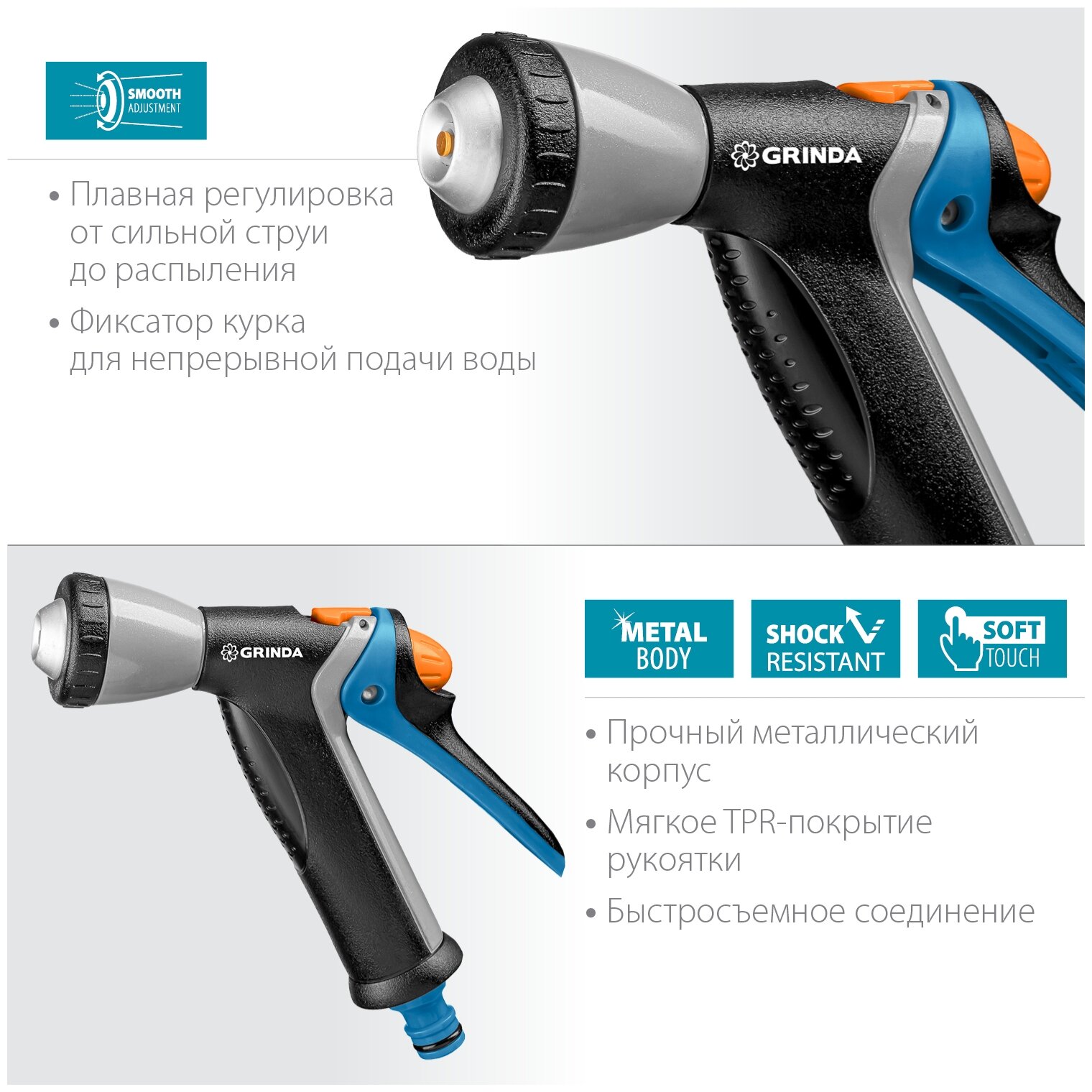 Отзывы на GRINDA BM-R, плавная регулировка, курок сзади, металлический с TPR, поливочный пистолет, PROLine (8-427311)
