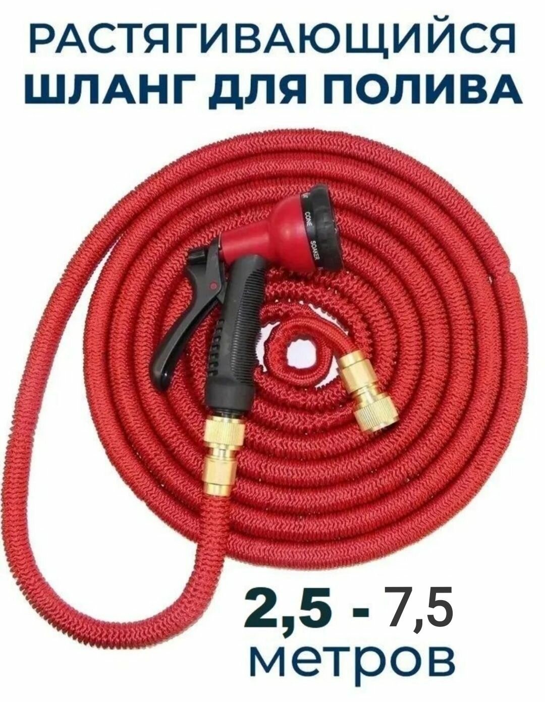 10 цен на Шланг садовый растягивающийся 7,5 метров для полива с распылителем Magic Garden Hose Xhose / 7,5 метров красный с металлическим соединением