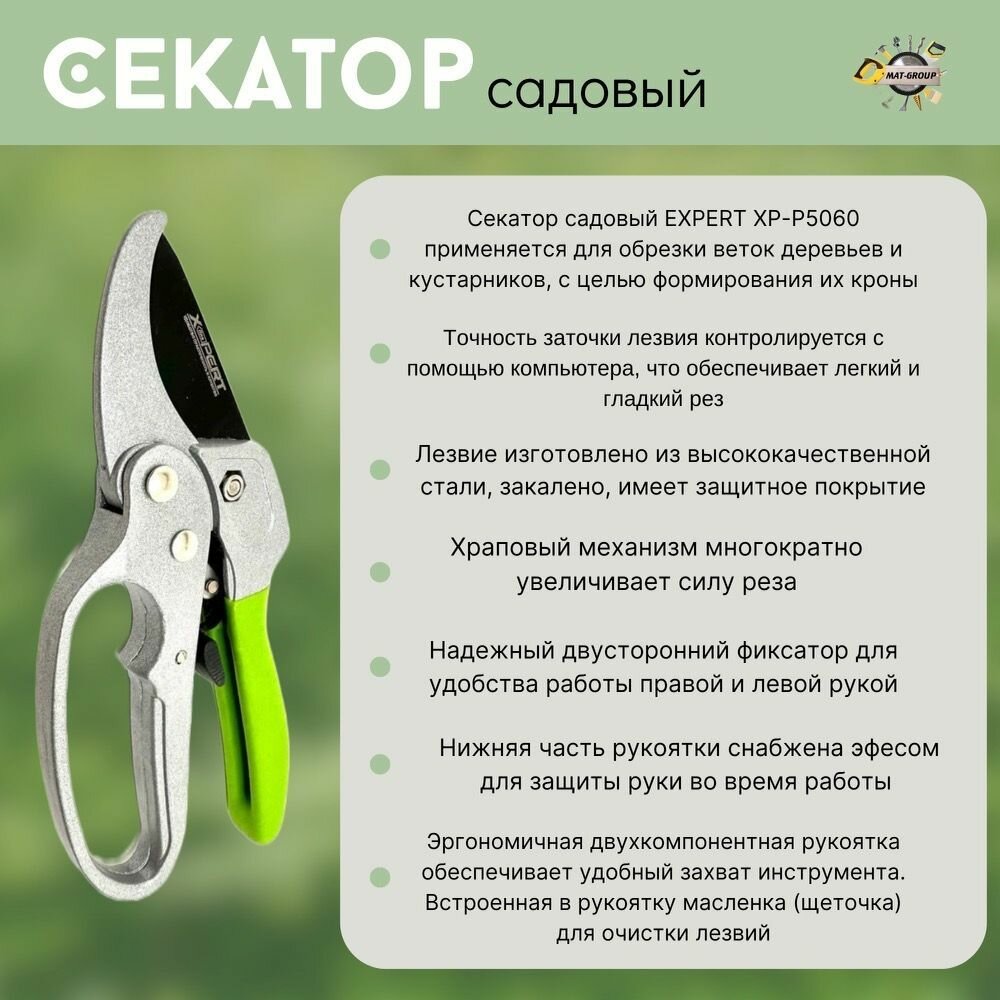 Секатор садовый с храповым механизмом / EXPERT XP-P5060 / Садовые ножницы информация: