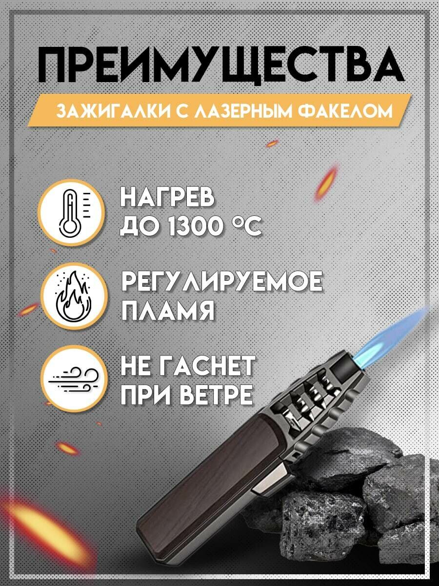 Газовая зажигалка с возможностью дозаправки и регулятором пламени / Турбо горелка в подарочной упаковке информация: