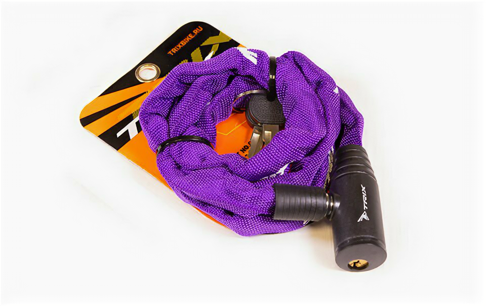 Отзывы на Замок велосипедный TRIX цепь с ключами 35x1200мм в тканевой оплетке пурпурный