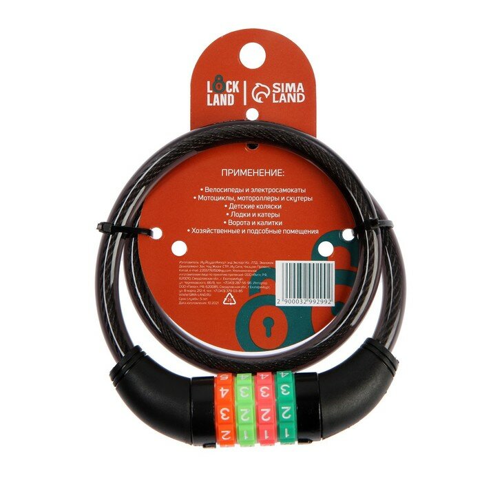 Замок навесной велосипедный ТероПром 3299299 LOCKLAND, кодовый, 10 х 650 мм информация:
