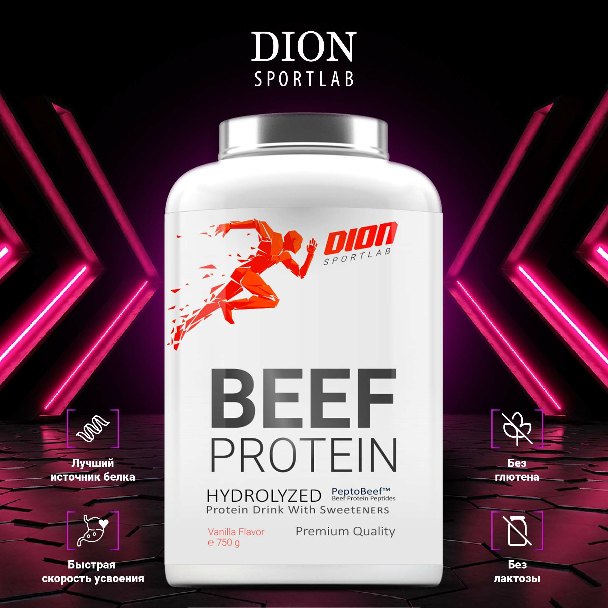 Профессиональный Гидролизованный Пептидный Beef Protein Dion Sportlab, Говяжий Протеин. Вкус: ваниль. Порошок 750г, Латвия информация: