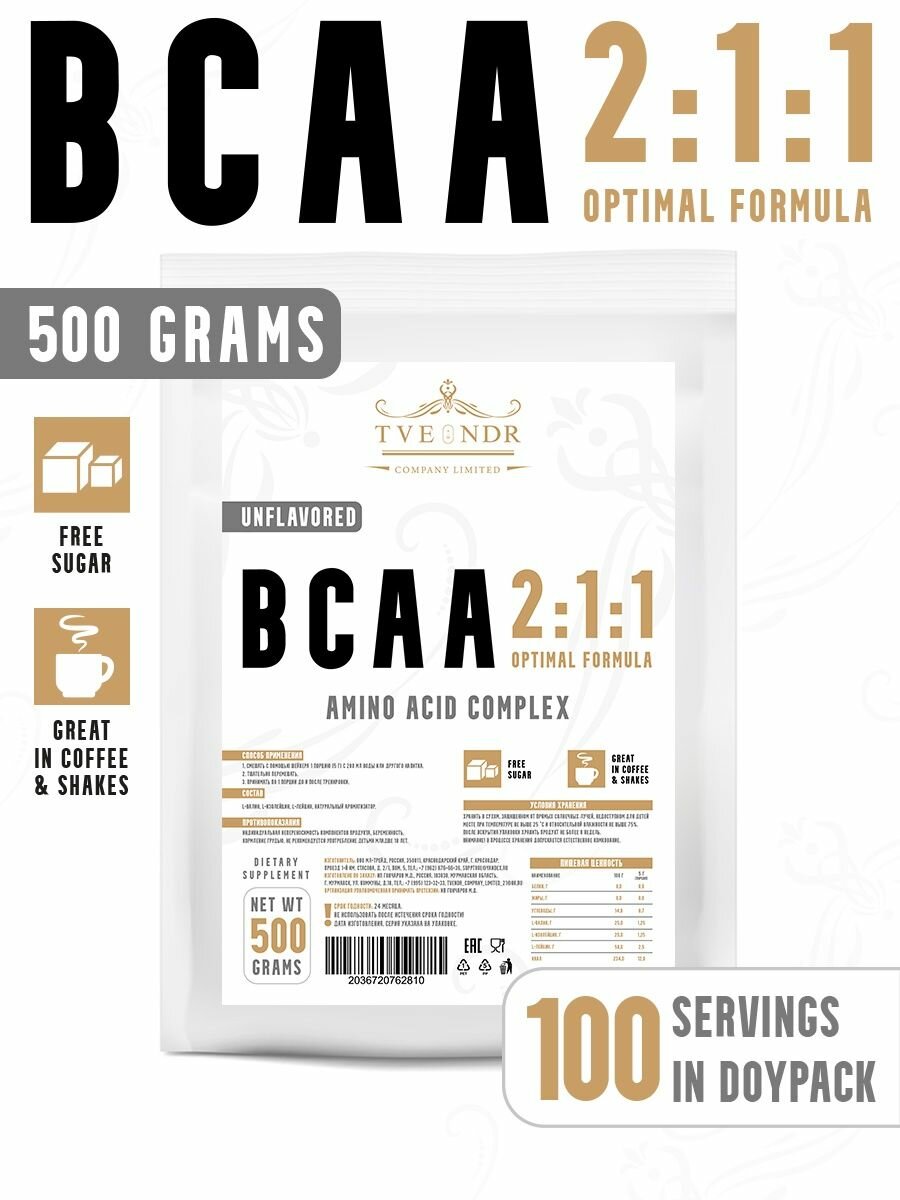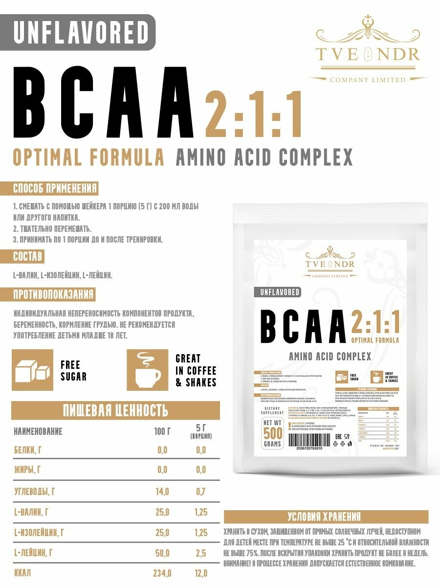 TVENDR Company Limited Порошок BCAA 2:1:1 500гр. Без вкуса информация:
