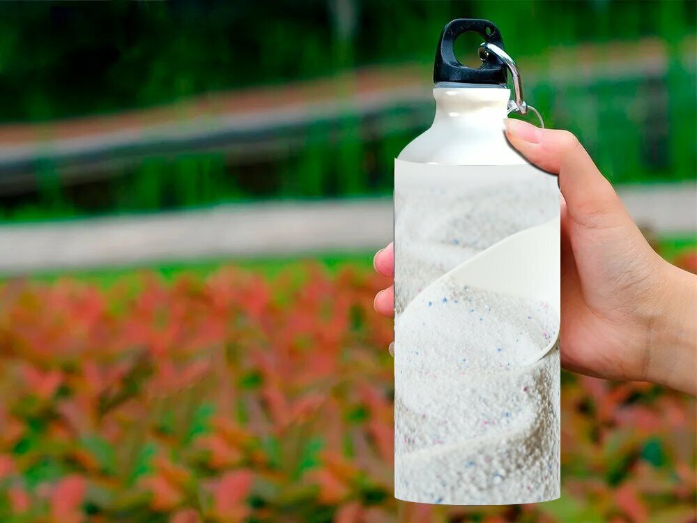 Отзывы на Бутылка фляга для воды "Стиральный порошок, чистящие средства, посудомоечная жидкость" 750 мл. с карабином и принтом