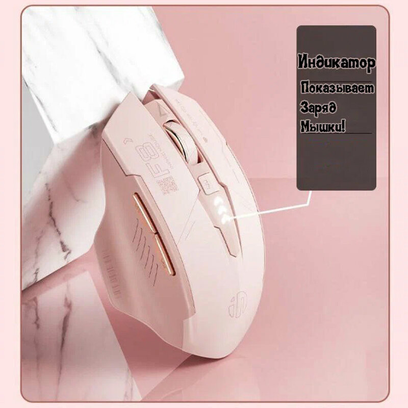 Беспроводная бесшумная игровая мышь INPHIC F8, USB-адаптер,2400 dpi, Нежно-розовый информация: