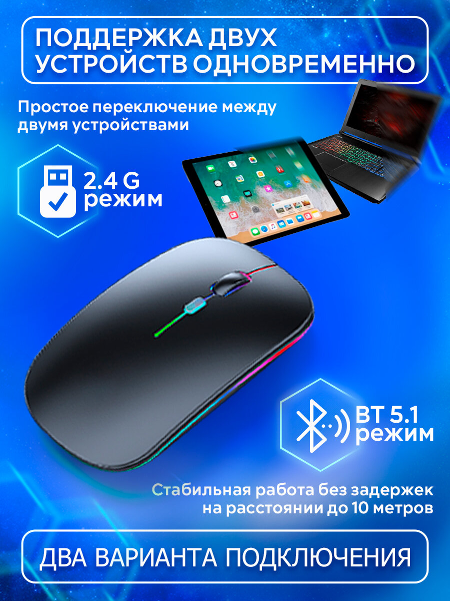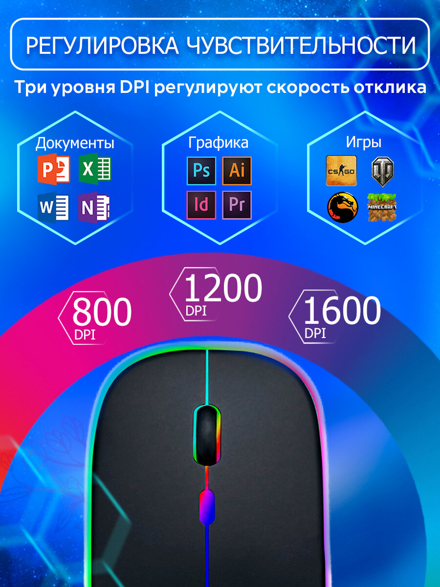 Мышь компьютерная беспроводная, игровая мышь с подсветкой, черная информация:
