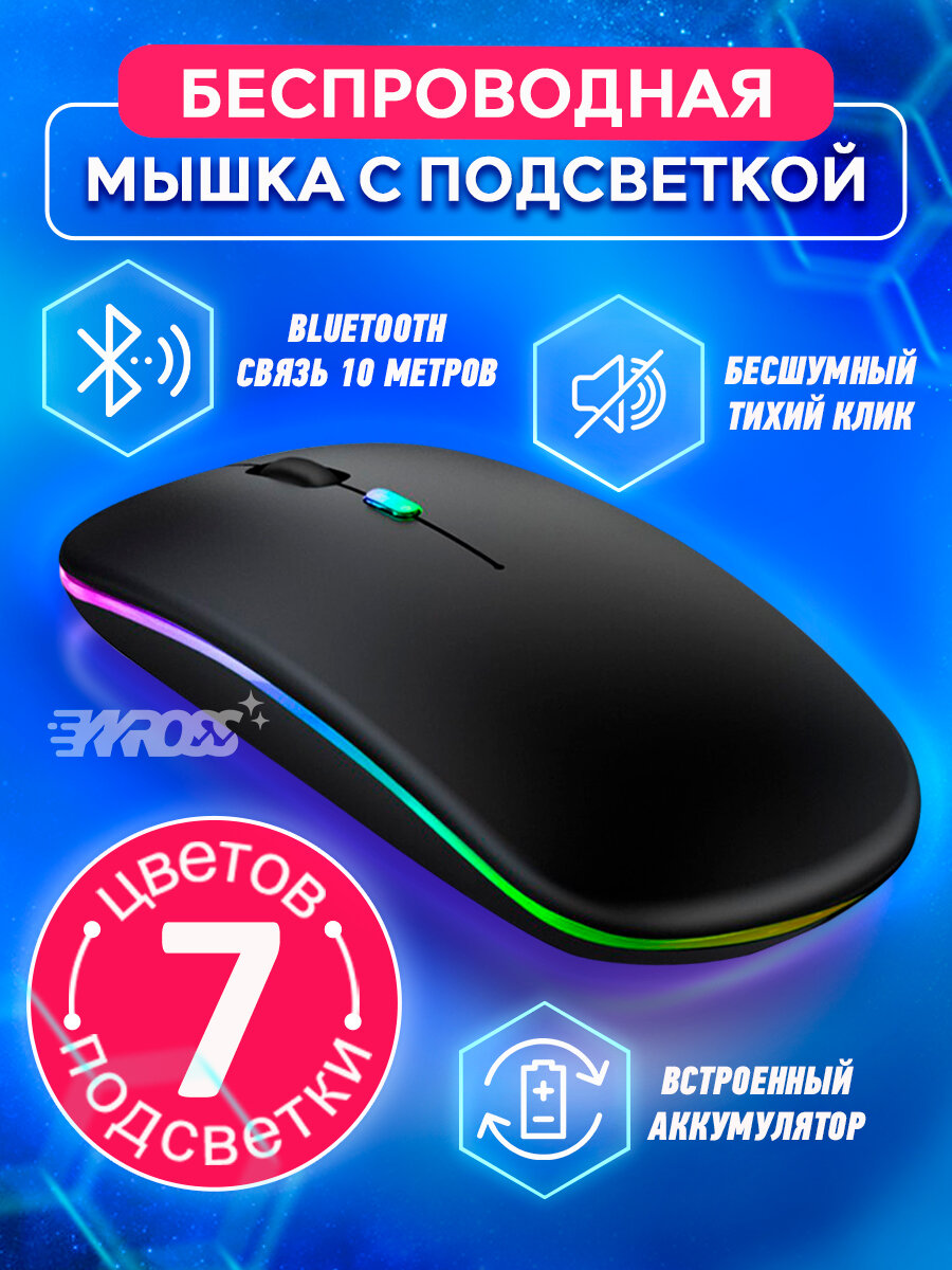 10 цен на Мышь компьютерная беспроводная, игровая мышь с подсветкой, черная