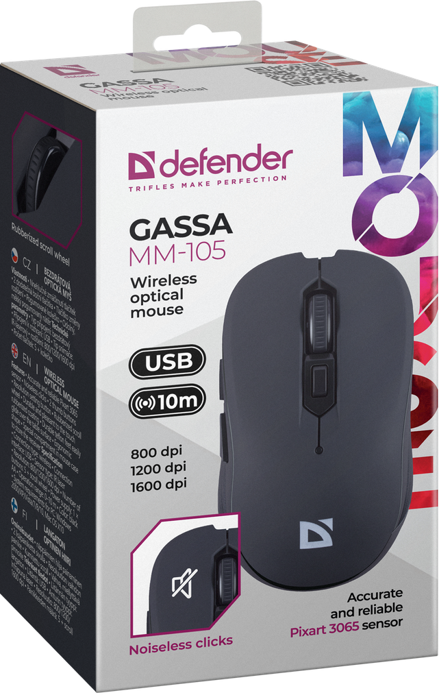 Беспроводная оптическая мышь Defender Gassa MM-105, черная. информация: