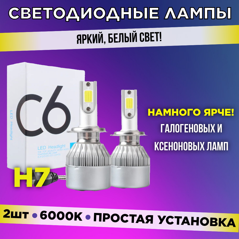 10 цен на Светодиодные автомобильные лампы C6, цоколь H7, 2шт.