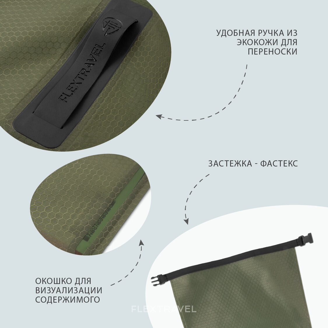 10 цен на Универсальный гермомешочек FlexTravel, водонепроницаемый мешок на 2 литра, зеленый