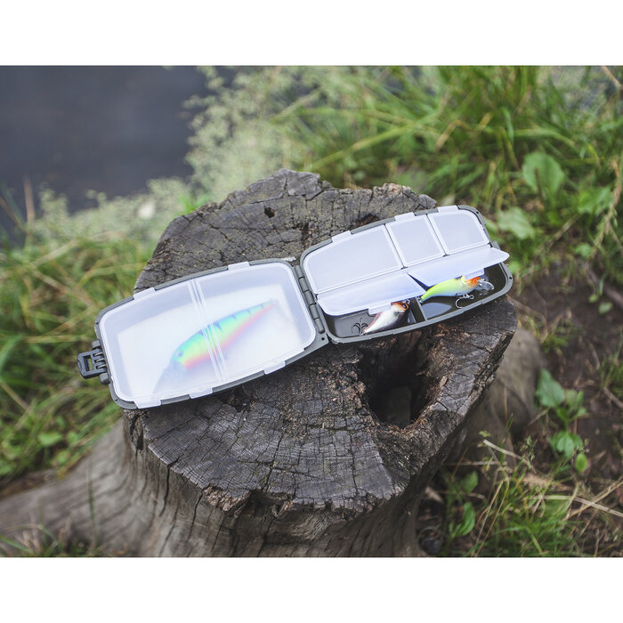 Коробка, органайзер, кейс рыболовный двухсторонний для воблеров, блёсен и раттлинов. 14 ячеек