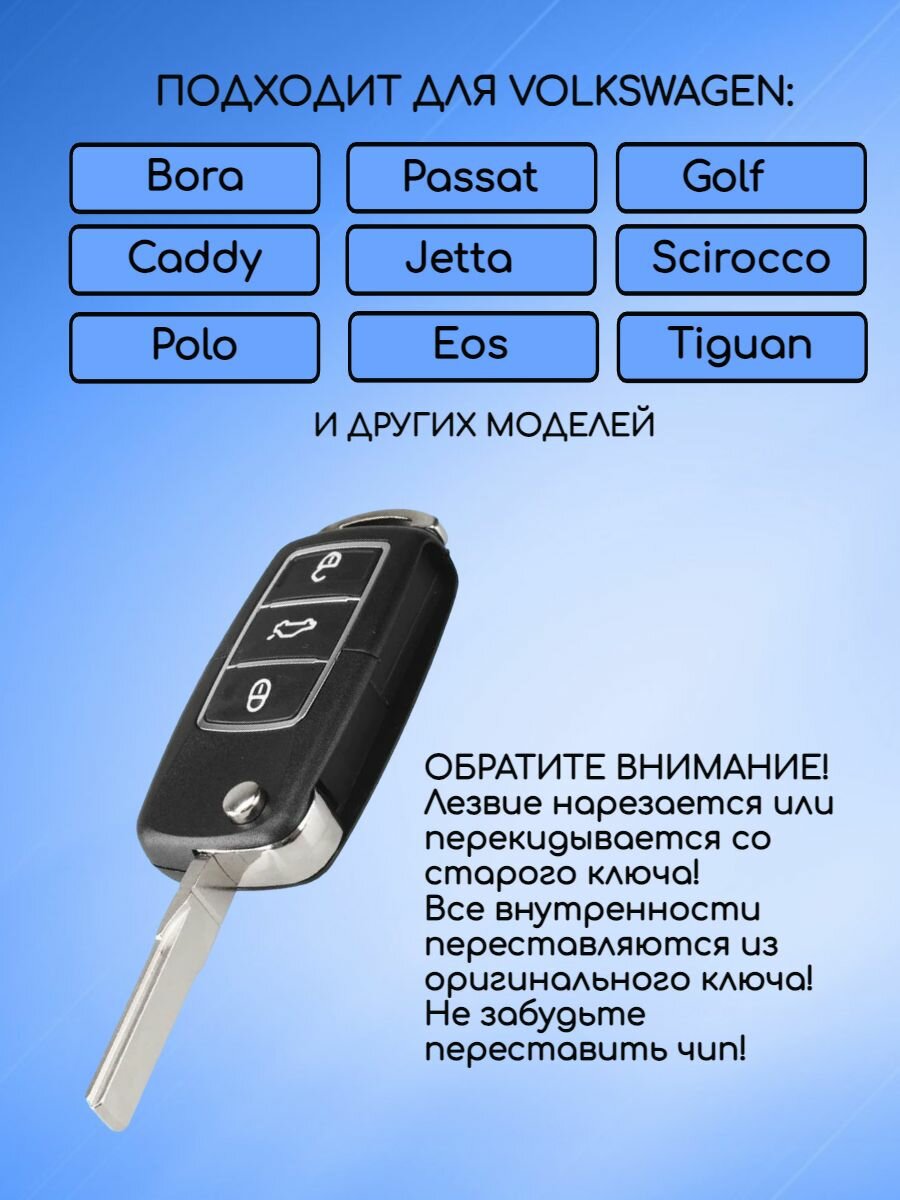 Корпус выкидного ключа старого образца с 3 кнопками для Фольксваген / VW информация: