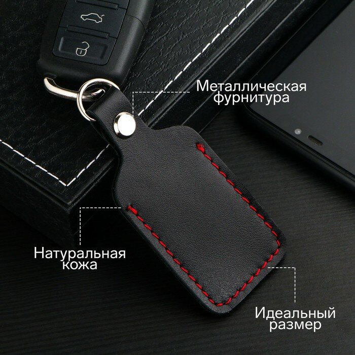 Брелок для автомобильного ключа, метка, прямоугольный, натуральная кожа, черный информация: