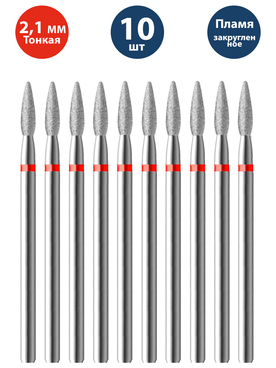 10 цен на Владмива Фреза для маникюра и педикюра алмазная 806 104 243N 514 021 Тонкая красная пламя (10 шт)