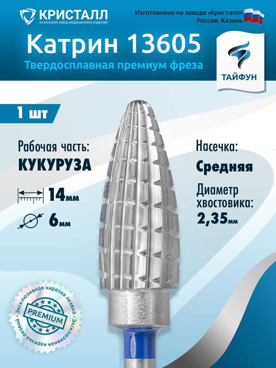 Тайфун, Твердосплавная фреза Катрин 13605 (кукуруза), средняя, D6, L14 информация:
