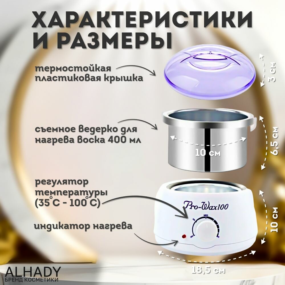 10 цен на Воскоплав для депиляции 400 мл, pro wax 100 для удаления волос на лице и теле. Воскоплав баночный набор ALHADY