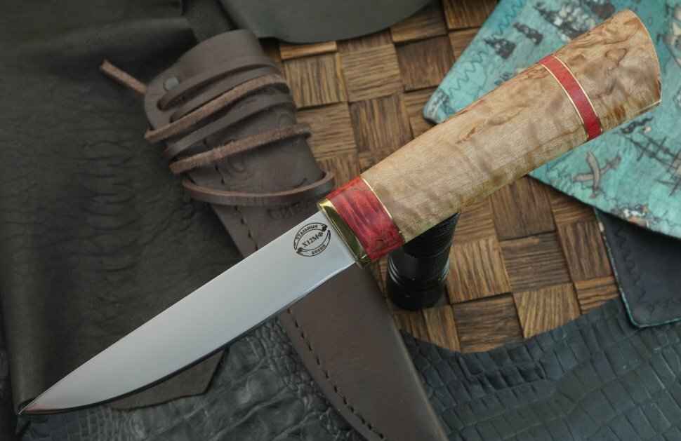 Отзывы на Нож Стальные Бивни Малый Якутский, сталь Х12МФ, рукоять карельская береза, красная вставка