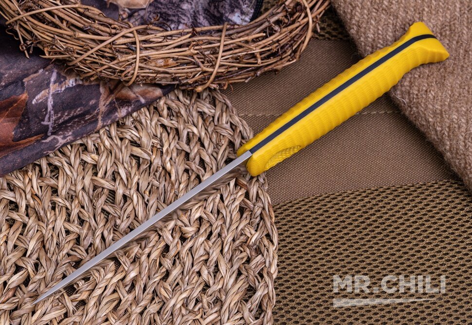 Отзывы на Нож NorthF финка "Грибок" N690, G10 желтая, ножны – kydex, выпуклая линза