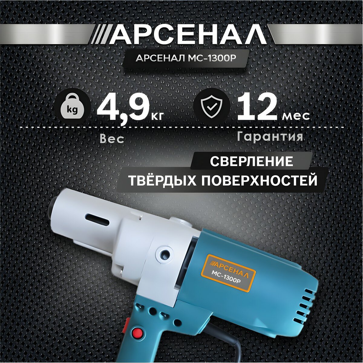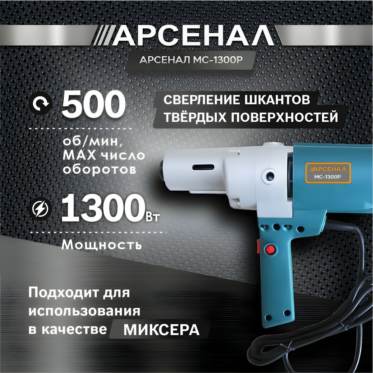 Низкооборотистая дрель сетевая Арсенал МС-1300Р / сверлильная машина для шкантов (1300 Вт, 500 об/мин) информация: