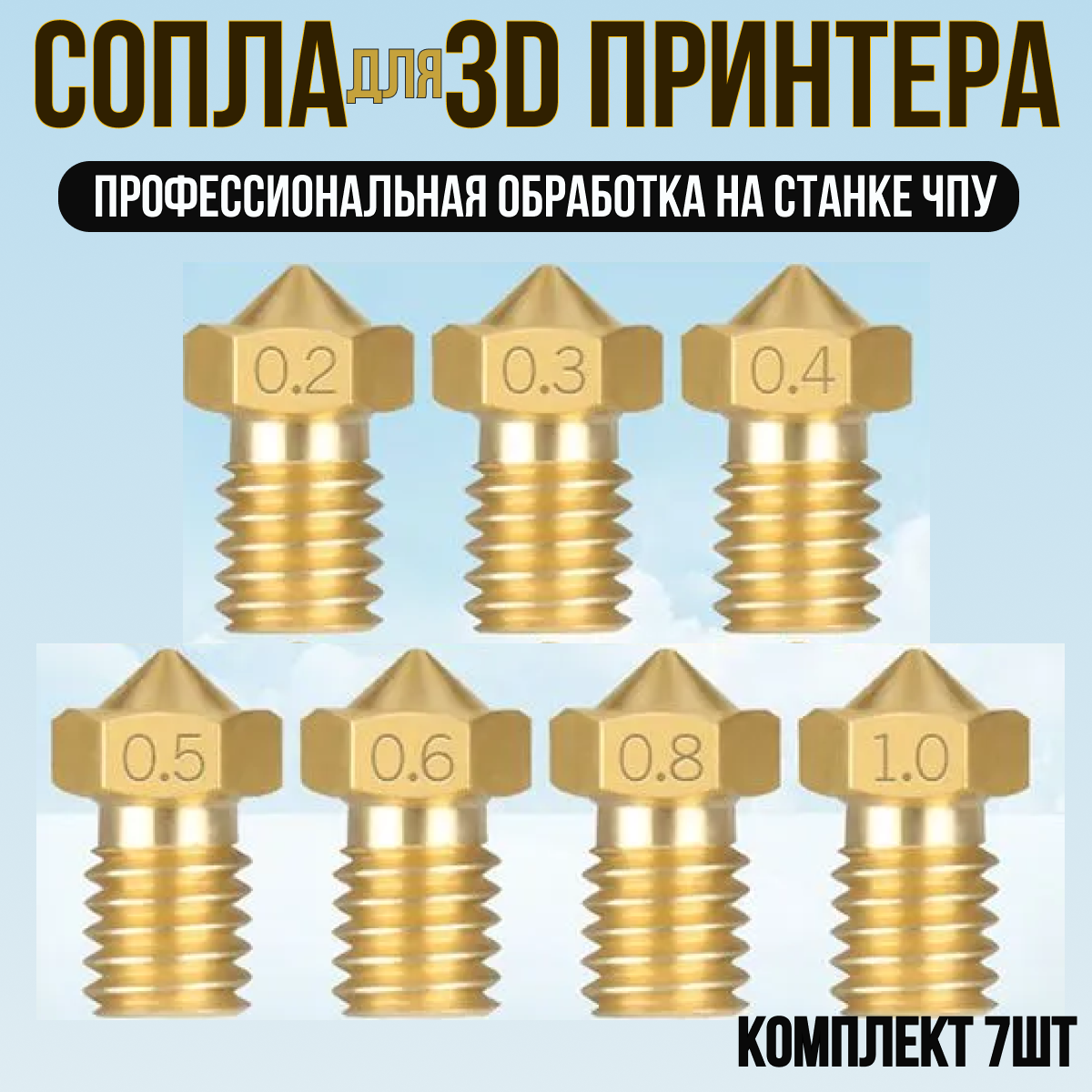 Отзывы на Сопло для 3D принтера. Набор из 7 сопел для E3D V5,V6 / Комплект для 3д принтера размерами 0.4, 0.6