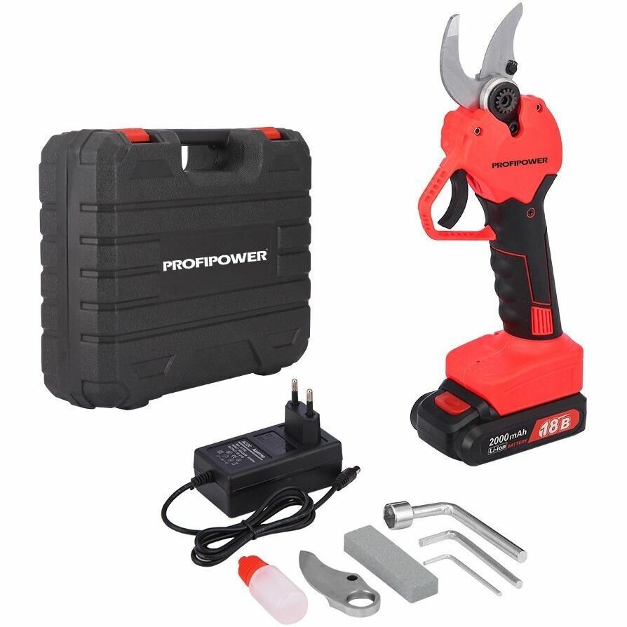PROFIPOWER Бесщеточный аккумуляторный садовый секатор 18B, MKGSP (2шт Li- ion аккумулятора,2.0Ач, толщина реза: 3.0мм. ) E0099