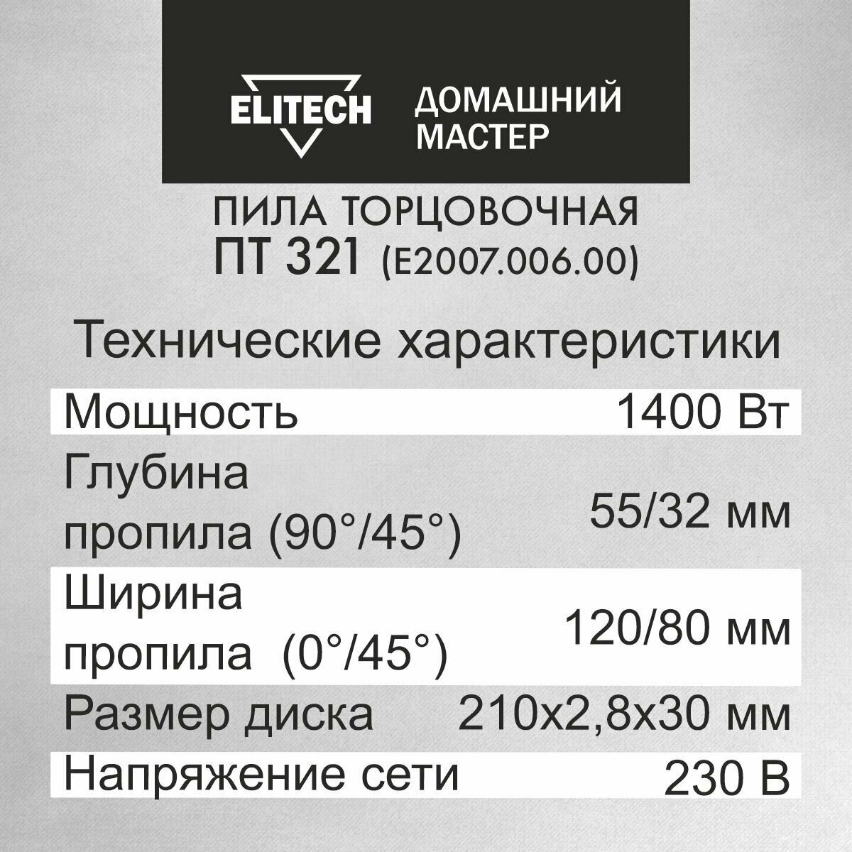 Пила торцовочная ELITECH ДМ ПТ 321 (E2007.006.00) информация: