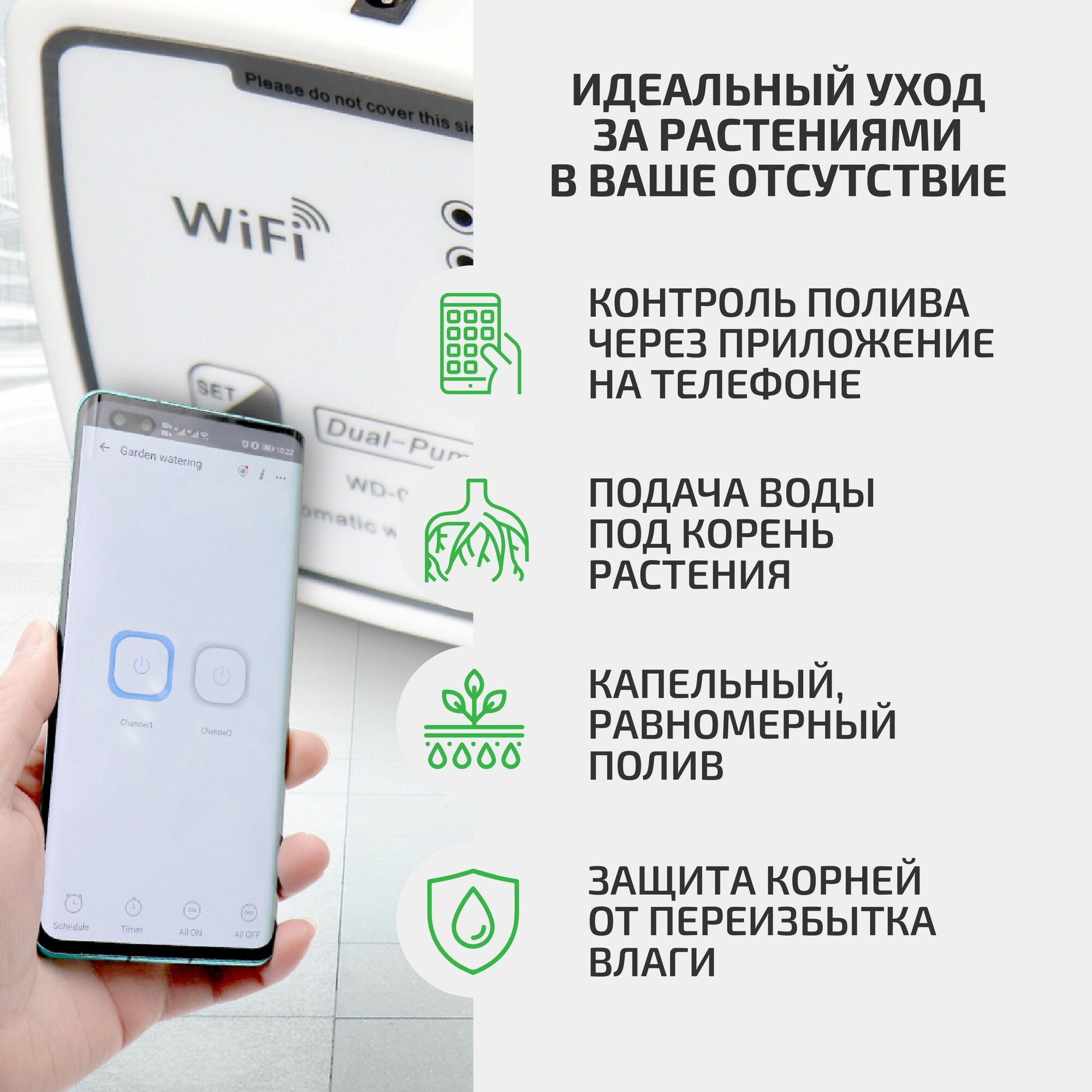 | Дополнительная информация | Автополив может осуществляться с мобильного телефона через WiFi. |
