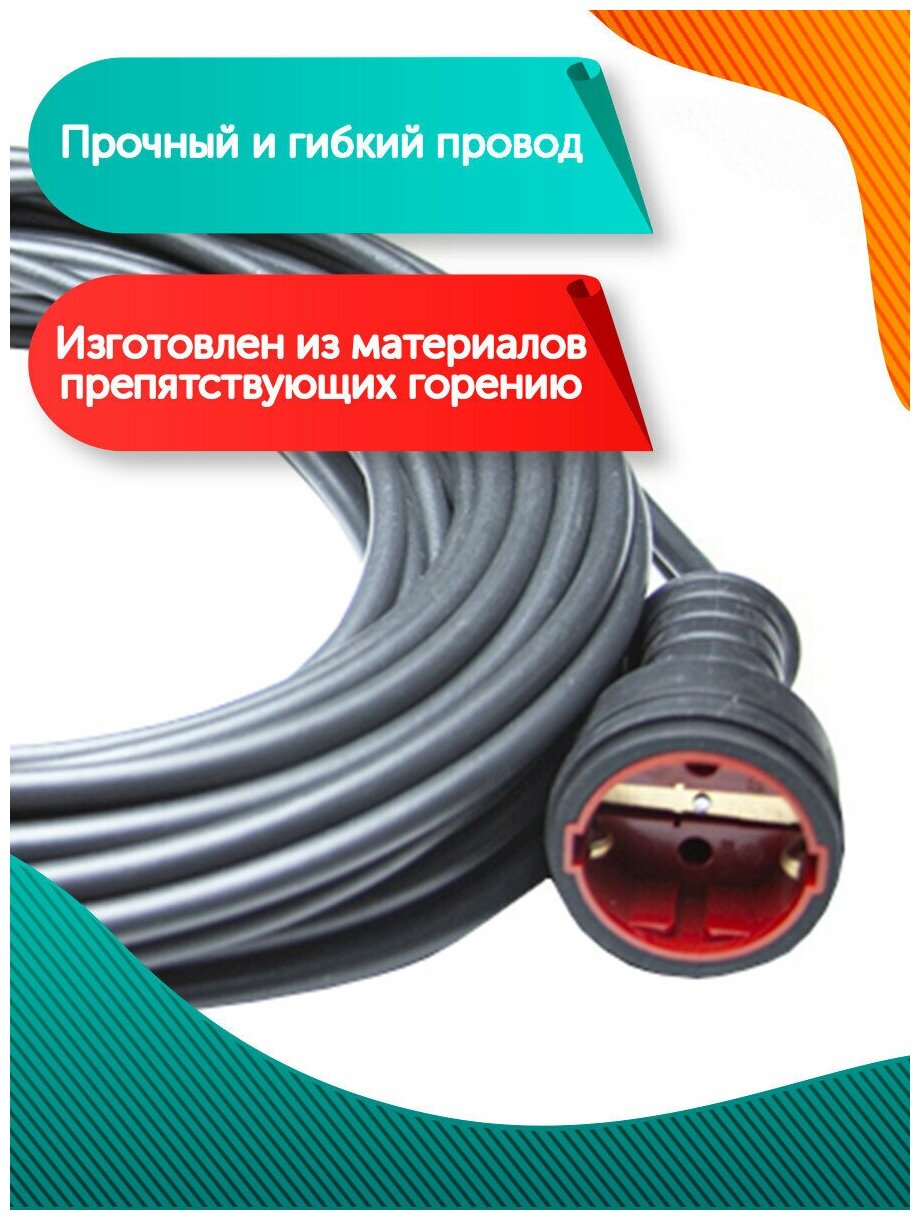 10 цен на Удлинитель уличный силовой с заземлениеv 10 метров 3х1,5 мм, ПВС 16А IP44 для садового оборудования насосной техники