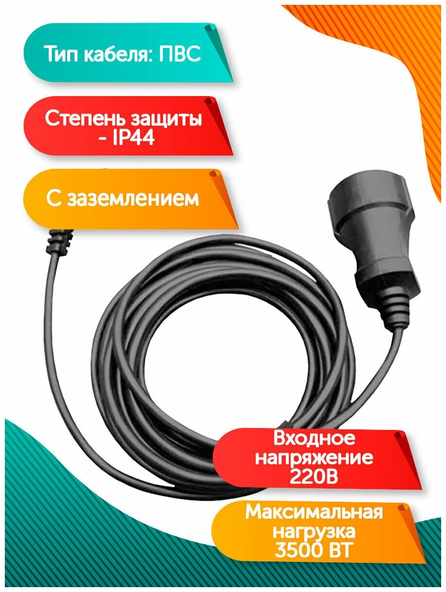 Удлинитель уличный силовой с заземлениеv 10 метров 3х1,5 мм, ПВС 16А IP44 для садового оборудования насосной техники информация: