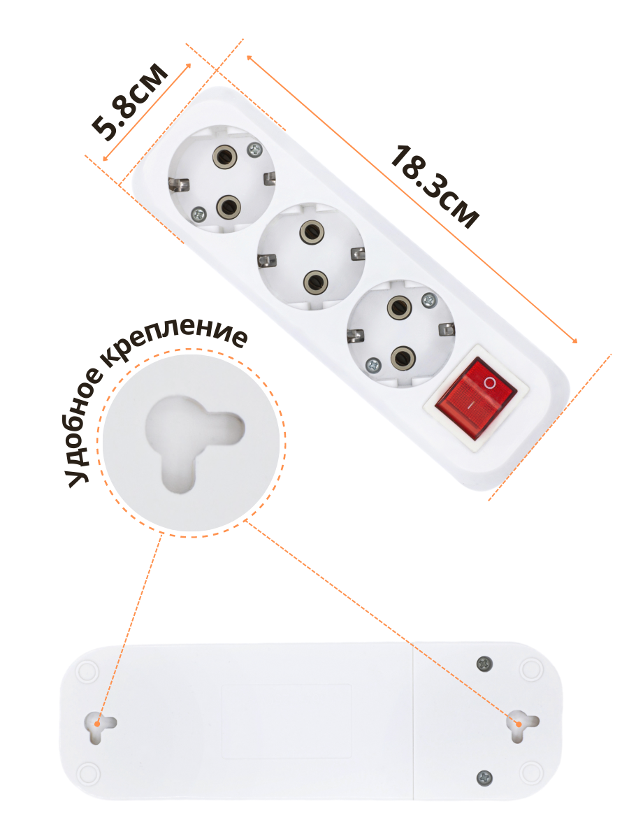 Отзывы на Сетевой фильтр удлинитель с выключателем - 3 розетки, 1 метр, заземление