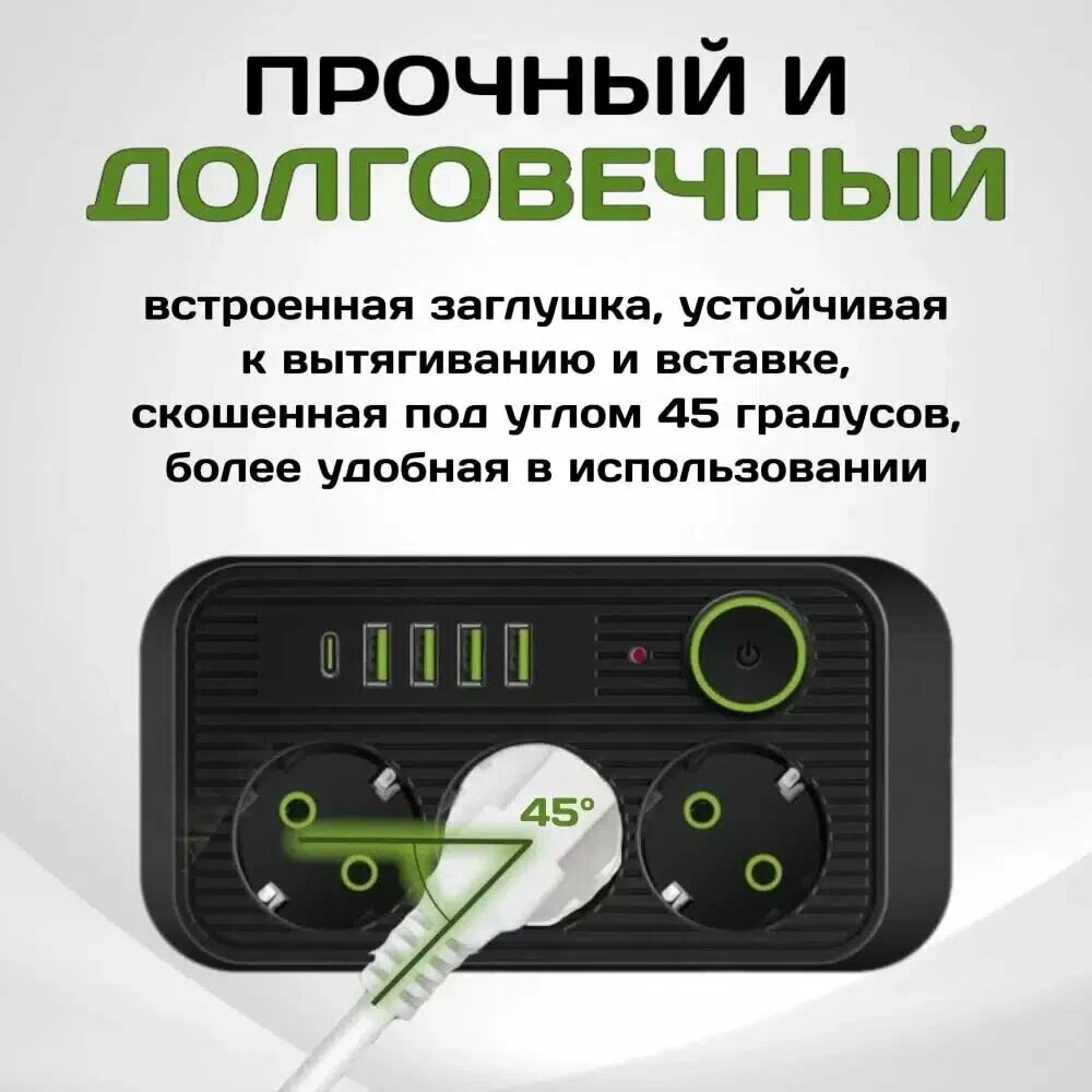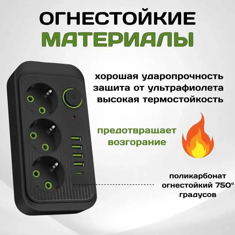 Сетевой фильтр 2606 с 6 розетками 2USB + 1 Type-C / Многофункциональный удлинитель с предохранителем