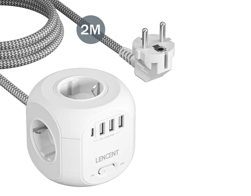 10 цен на Удлинитель 2М 3 розетки с 3 USB и 1 Type-C. LENCENT.