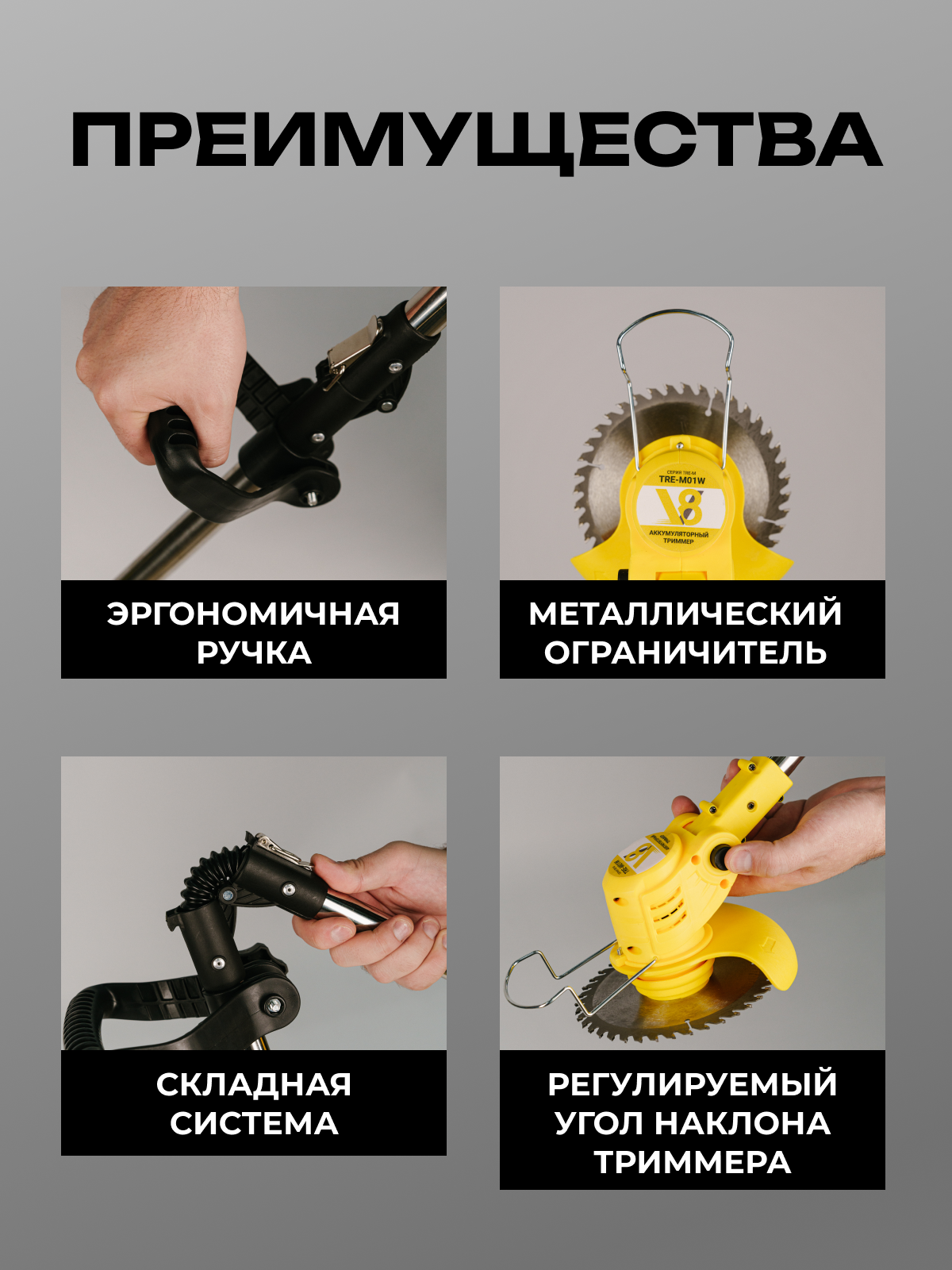 10 цен на Аккумуляторный триммер V8 TRE-M01W складной, с колесом